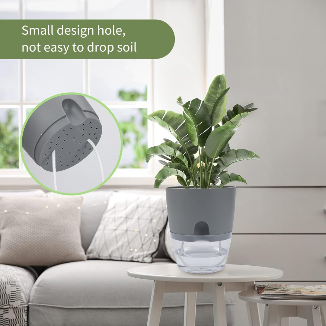 Water is stored in the lower chamber and gradually absorbed by the soil as needed, ensuring optimal moisture without waterlogging.