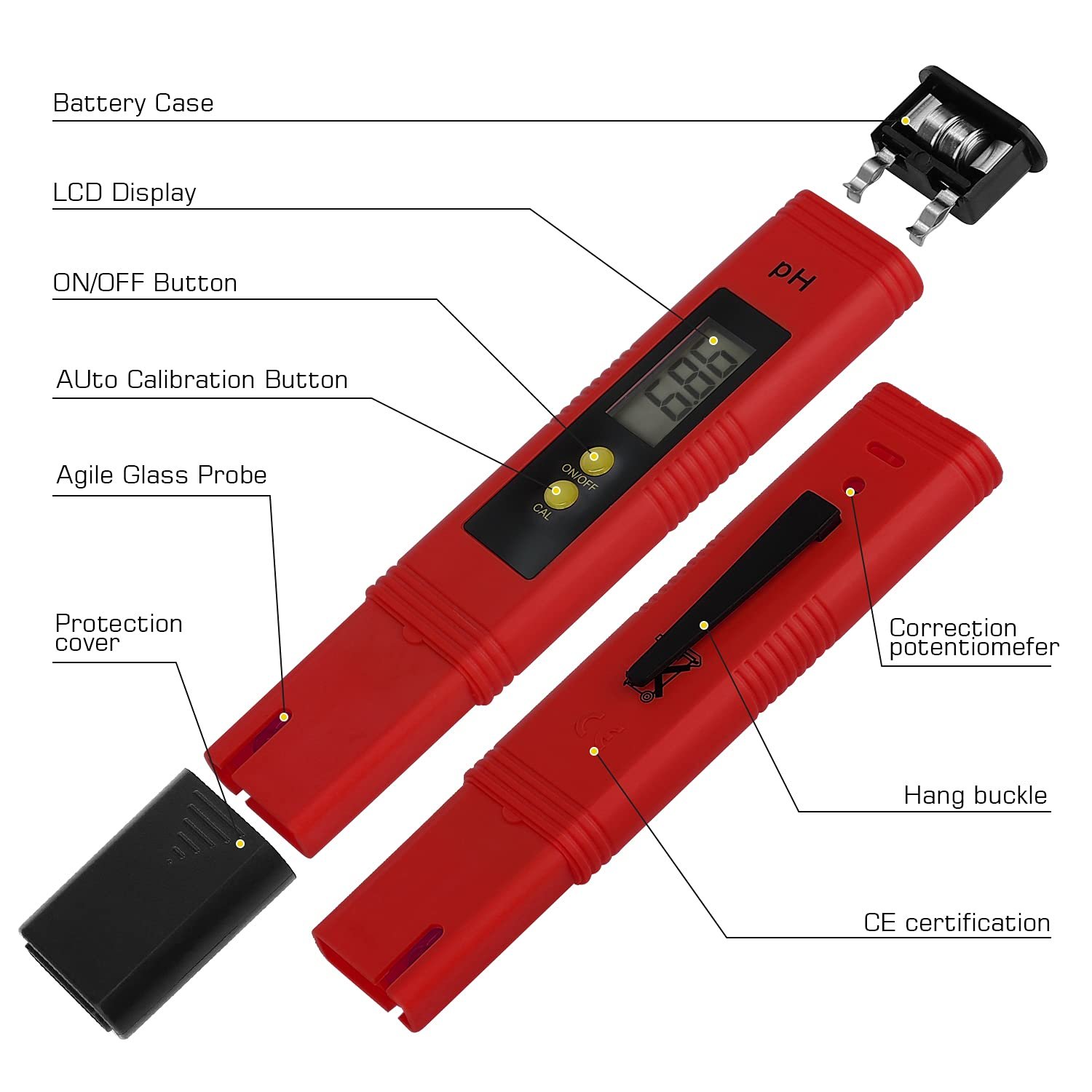 - Long battery life: The pH meter is powered by two LR44 batteries (included) and has a long battery life, so you don’t have to worry about frequent replacements.